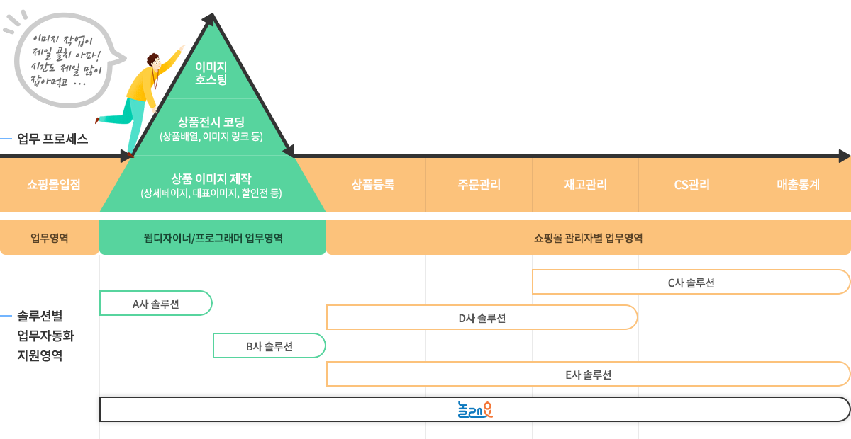 쇼핑몰 관리자 (총괄담당, 국내담당, 해외담당, MD 등) 업무 대체